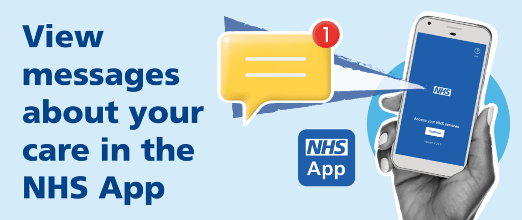 The NHS App is a simple and secure way to receive messages from your trusted health care providers. Make sure to turn on notifications for the NHS App to stay up to date. Download the NHS App or find the same services on the NHS website: www.nhs.uk/nhs-app